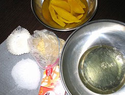 7Dマンゴーは水で3時間以上戻しておきましょう。バターは常温に柔らかくしておきます。
