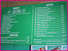 2)メニューはこんな感じ。おかずリストから好きなアイテムを選んでオーダー。おかずの数によって値段が変わる仕組みです。その他、一品ものも充実やな。 |