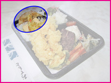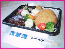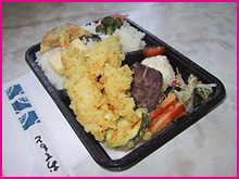 3)これが、私あんたんこのお気に入りナンバー1、『コロッケ&ハンバーグ弁当』。これで$7.00、それも税金込み!財布から小銭をジャラジャラ出さなくて済むので助かります。