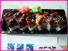 5)元祖、うなぎチーズロール。うなぎの蒲焼とクリームチーズを巻き寿司にしちゃう、という斬新なアイデア。蒲焼が丸ごと乗ってこれまた驚愕の$4.50!うなぎとクリームチーズが口の中でまったりと混ざり合う味がたまんないそうです。(私あんたんこはシーフードNGにつき食べてません、ごめんなさい。でも、みんなが『激ウマですっ!』って言うもんだから載せて見ましたん♪)