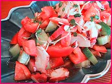 で、本命のうめねぎピザの前にあんたんこが必ずオーダーするのがこれ、『たこトマ・サラダ』。(ってことは、蛸とトマトのサラダっすね?)