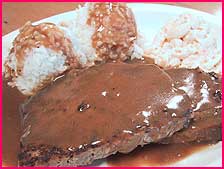 (左上の方に見えてるのはマカロニ・サラダでっか?) ←そうだす、マカロニ・サラダだす。これがねぇ、またさぁ、グレービーとフライドライスにあうのよねぇ〜。(←あの、オネェー言葉になってますが。。。) |