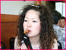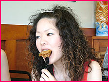 エセ毛印: 『確かにかなり辛いんやけど、チキンの味を殺さない程度のぜつみょーな辛さなんですわ。うんうん、いや、美味いっす。』