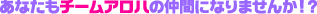 チームアロハ ドットコムでは、スタッフを大募集いたします。あなたの空いてる時間を、チームアロハに貸して頂けませんか? 【募集職種】 ■ 広告営業、サイト構築営業、レンタル・サーバー営業 【応募条件】 ■ コミッションで働ける方(ベース給与はありません)。 ■ ご自宅などからインターネットを利用してホームページの閲覧、メールのやり取りなどができる方。 ■ 日本語堪能な方(英語もできれば更に嬉しいです)。 ■ ハワイで働くのに必要な査証、労働許可、永住権、市民権などをお持ちの方。 ■ 人と会ってお話しするのが好きな方。 ■ 応募に当たって面接を受けていただける方。 【待遇】 ■ 就業時間の決まりはありません。あなたの空いている時間をお使いいただければ結構です。 ■ ご契約いただいた営業内容に従ってコミッションをお支払いします。営業職経験者の方は、更に高額なコミッションにて優遇いたします。 【お問い合わせ】 ■ お問い合わせ、ご応募は、e-mail または FAX でご連絡ください。 e-mail: info@team-aloha.com FAX: (808)955-6701