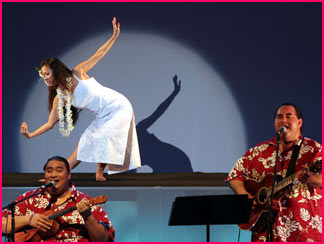 | ← オープニングは、ノヘラニのオリジナルソングの”Beautiful Hawaii"。まだ、明るいですね。(^-^) |