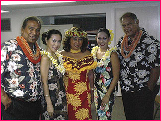 フラ・シスタのカペカと、間際の打合わせ。でもまだ、リハがあるだけマシなんですょ。ハワイでプロになってから、7年。こんなハワイの常識にも慣れてしまったなぁ、、、 |