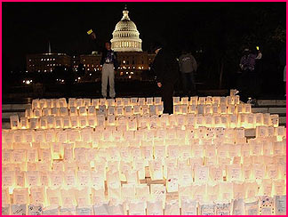 キャピタルの前で一斉に灯されたLuminaria(キャンドル)。とても、感動的で綺麗な光景でした。今でも、目に焼きついています。私も、父のキャンドルを灯して弔うことができました。